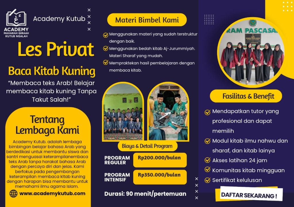 Academy Kutub – Cara Cepat & Tepat Memahami Literatur Islam Klasik Ingin mahir membaca kitab gundul tanpa harus bingung harakat? Kami hadir untuk membimbing Anda menguasai literatur klasik dengan metode yang sistematis dan mudah dipahami.